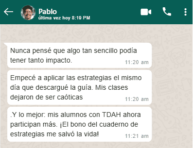 ✅ Te sientes agotada/o o frustrada/o por no saber cómo ayudar a ese alumno que no sigue instrucciones o se distrae con facilidad.